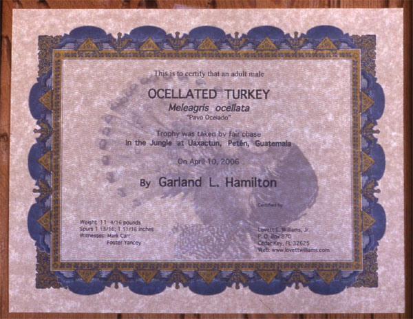 .:| Ocellated in Guatemala | Gould's at El Rancho Verde |:. .:| Yelpers and Accessories | Recordings | Books | Other Products | Hunting Camps | Tips, Trips and News | Order Form | Site Index |:. |